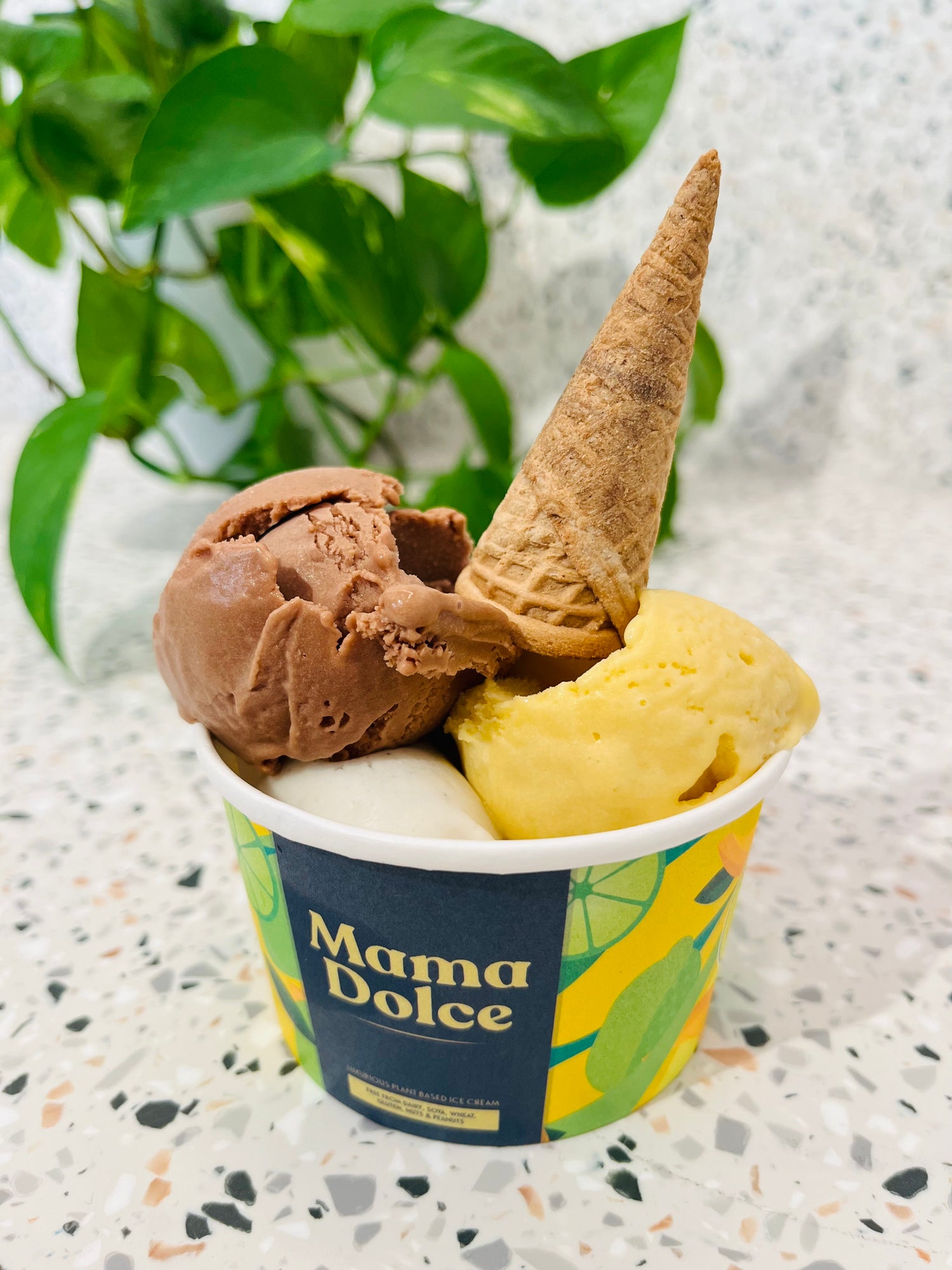 Mama Dolce is committed to sustainability, offering plant-based ice cream crafted with the highest quality, ethically sourced ingredients. From selecting the finest produce to ensuring eco-friendly production methods, we prioritise environmental and social responsibility at every stage. We collaborate with suppliers who share our values of fair trade, ethical sourcing, and sustainability, ensuring that every scoop is not only delicious but also responsibly made.